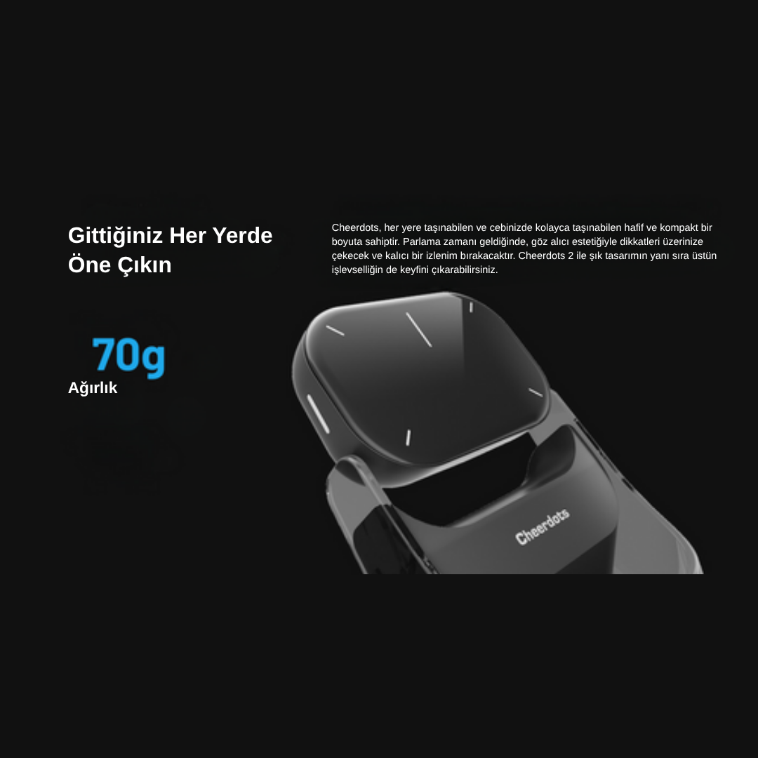 Cheerdots 2, çıkarılabilir tasarımıyla rahatlığı yeniden tanımlıyor. Şık estetik, kompakt form faktörü ve benzersiz işlevselliği bir araya getiriyor. Hem fare hem de dokunmatik yüzey olarak kullanılabilen bu ürün, kişiselleştirilmiş bir dokunuş için benzersiz hareketleri özelleştirmenize olanak tanır. Cheerdots 2 ile stil veya işlevsellikten ödün vermeden seçim özgürlüğünün ve üstün taşınabilirliğin keyfini çıkarın.